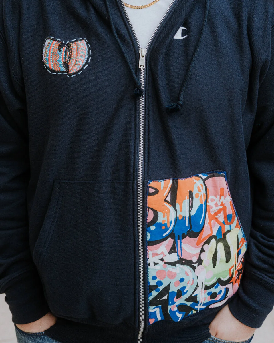 I had the opportunity to make a 90’s rap inspired zip up hoodie for my friend’s birthday! This graffiti print fabric and COOGI print Wu-Tang patch are definitely the best pick ups I’ve made lately.